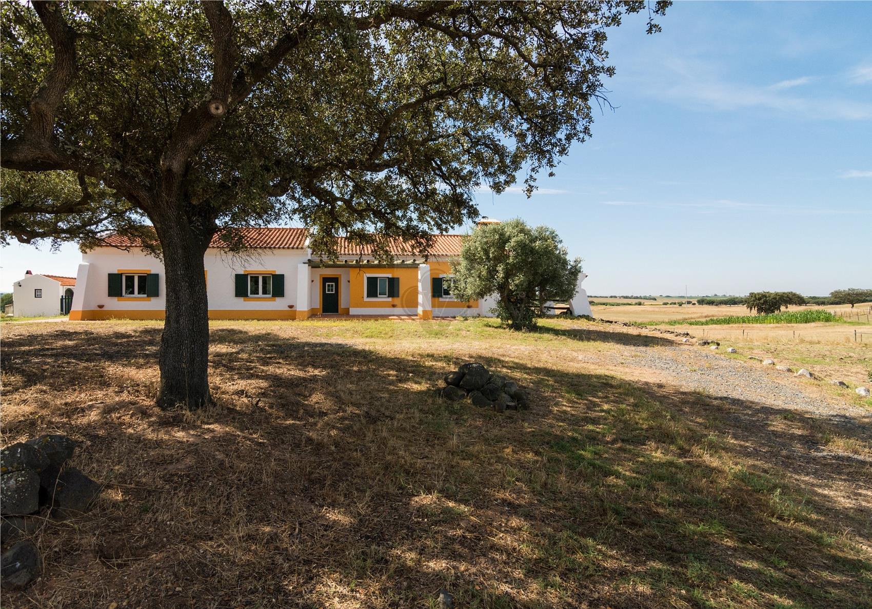 "Moradia T4 construída em 2007, em excelente estado de conservação, com uma área bruta de 250m2 inserida em terreno rústico com 2 hectares que lhe confere muita privacidade. Está excelente moradia térrea dispõe de amplas áreas com separação funcional entre zona privada e social. A zona privada é composta por 4 quartos (2 em suíte) e um WC completo comum aos quartos. Na zona social dispõe de cozinha, WC social, uma ampla sala de estar/jantar com lareira e sala de inverno com acesso direto ao jardim e à piscina. No exterior a churrasqueira e o jardim relvado junto à agradável piscina convidam a passar bons momentos em família e amigos desfrutando de deslumbrantes vistas sobre a planície alentejana. Localizada a 11 km de Ferreira do Alentejo, 34 km de Beja, 37 km de Grândola e a cerca de 60 Km das praias da Costa Alentejana, a propriedade está totalmente cercada e tem entrada por um portão automático. Ideal para refúgio de fim-de-semana ou para viver tranquilamente em pleno Alentejo."