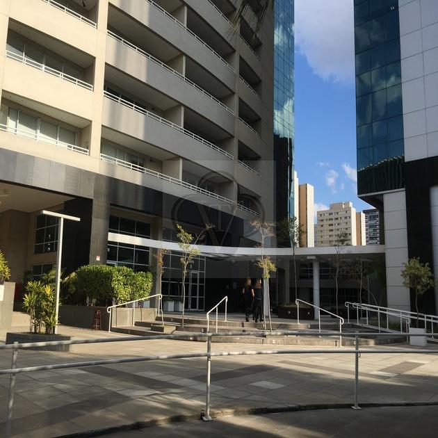 O edifício conta com 7 elevadores sociais, sistema de ar-condicionado central e um amplo estacionamento com 879 vagas, garantindo conforto e praticidade aos usuários e visitantes.